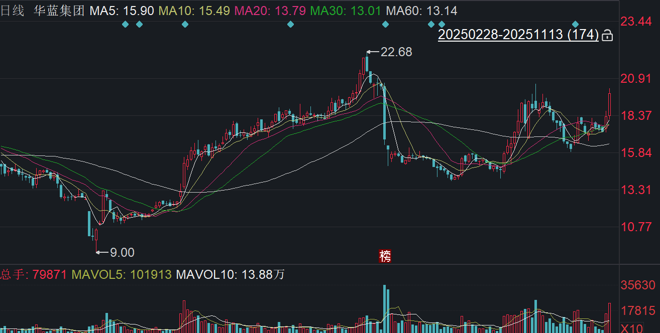 记者注意到,在相关信息尚未公开披露之际,华蓝集团停牌前股价“抢先”大幅上涨。截至13日收盘,华蓝集团上涨8.59%报19.85元/股,近两个交易日累计上涨14.75%。