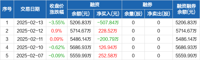 东亚机械:融资净偿还507.84万元,融资余额5206.83万元(02-13)