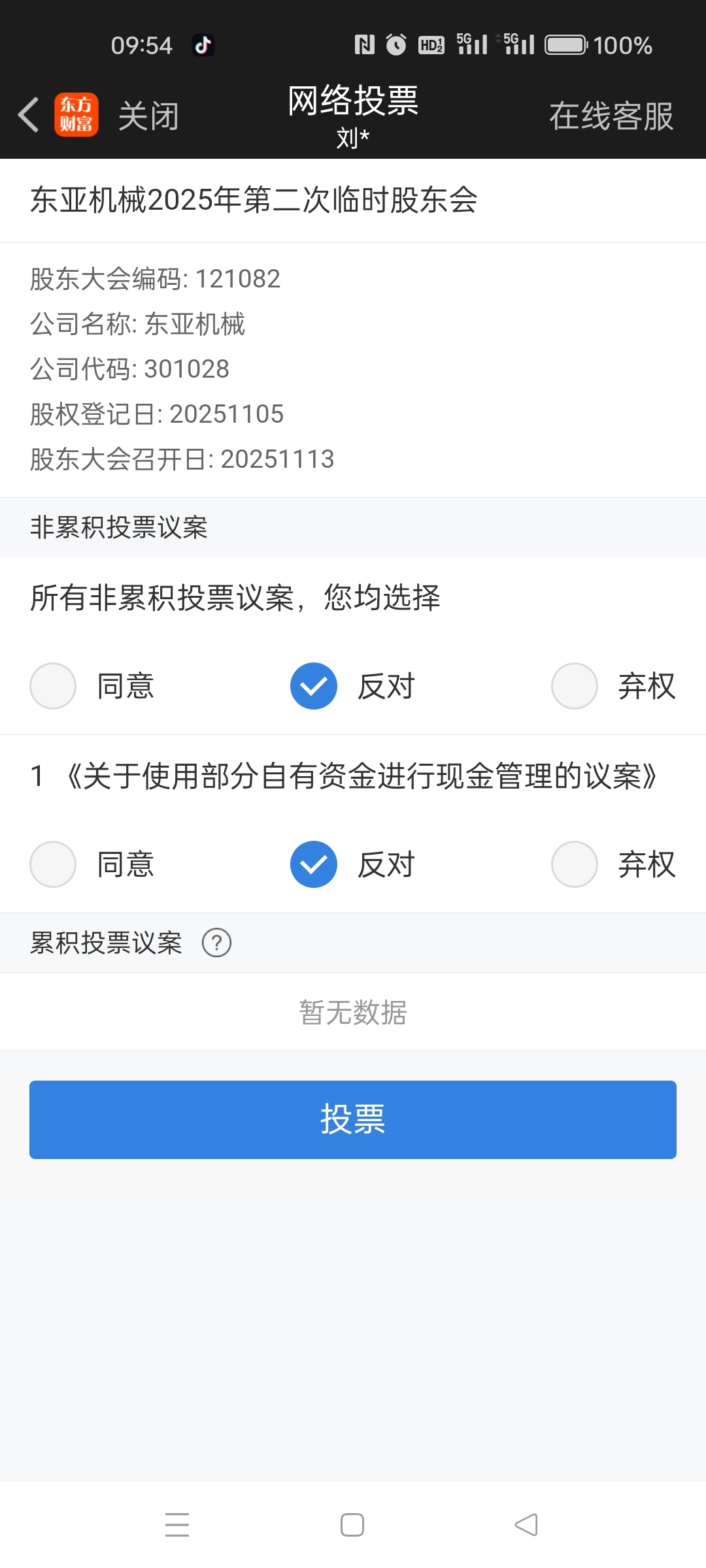 $东亚机械(SZ301028)$ 投了反对票,对这票无可奈何!