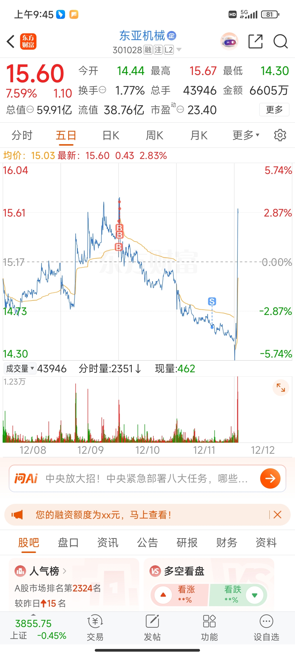 $东亚机械(SZ301028)$ 这什么鬼,昨天失望全割清仓了,你今天这样搞