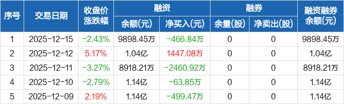 东亚机械:融资净偿还466.84万元,融资余额9898.45万元(12-15)