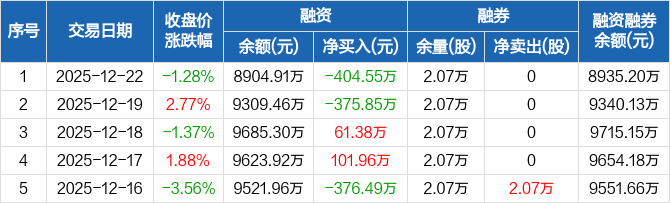东亚机械:融资净偿还404.55万元,融资余额8904.91万元(12-22)