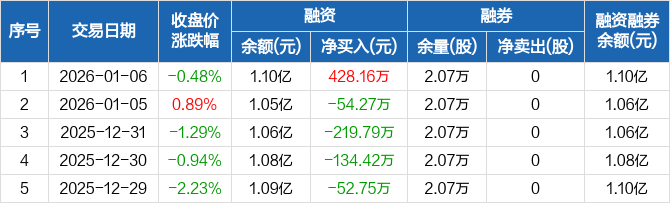 东亚机械:融资净买入428.16万元,融资余额1.1亿元(01-06)