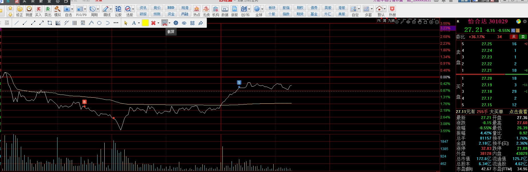$怡合达(SZ301029)$ 经过吧内高手指点,做了个差价挂了四个价买进2个,还有2个还挂着,降降成本,弄两条华子