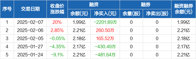 仕净科技:融资余额1.99亿元,创近一年新低(02-07)