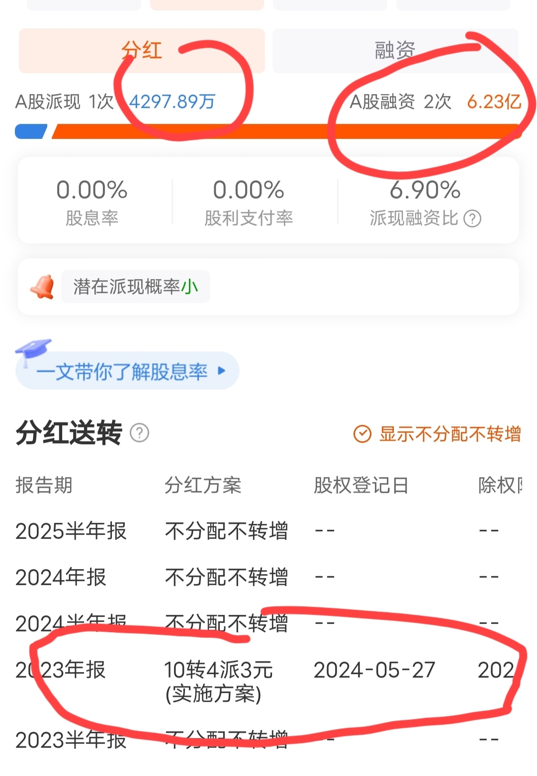 上市后仅在股价被拉高3番后的2023年度盆满钵满后在2024的出货阶段有强烈迷惑需求下有些许愿意分红,而且夹带着转增股。