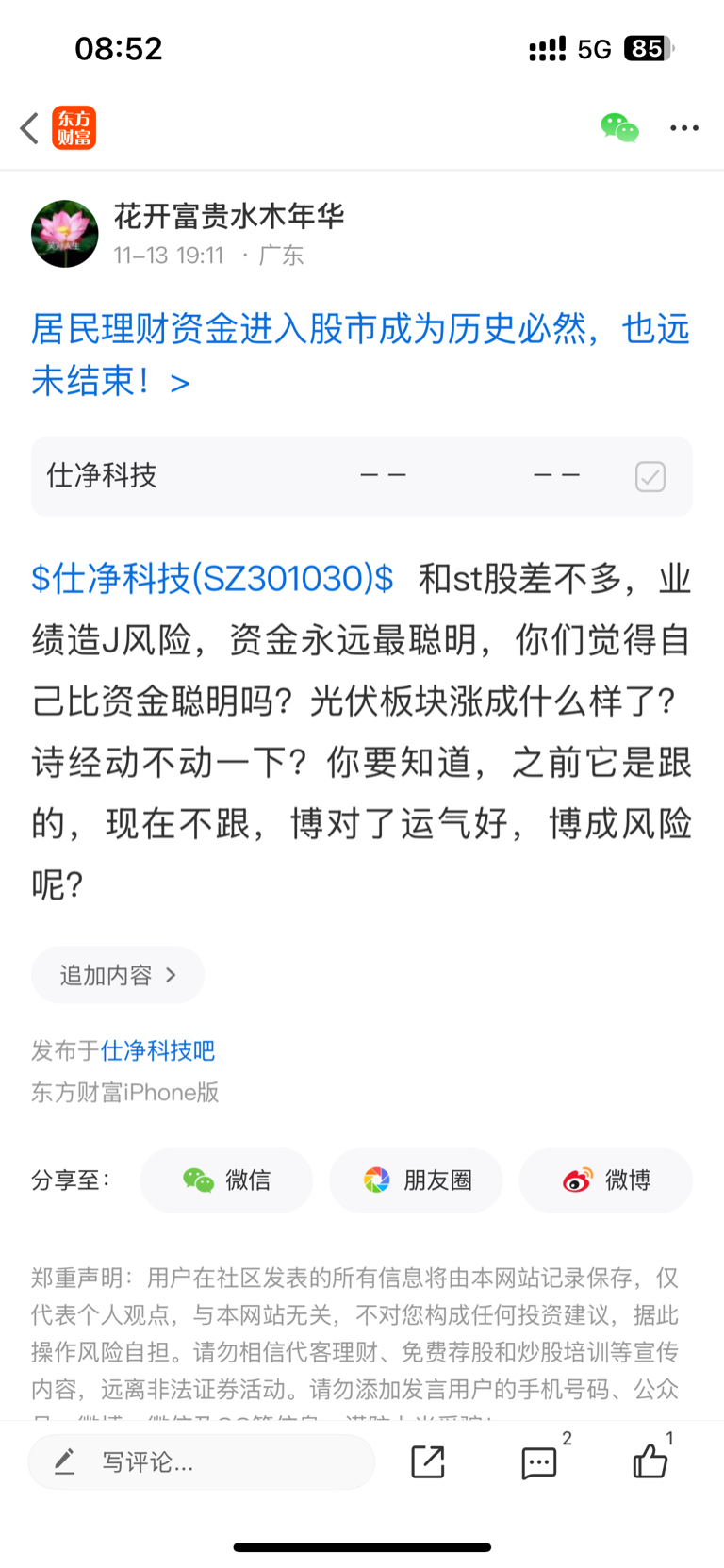 $仕净科技(SZ301030)$ 看我十一月除的发言
