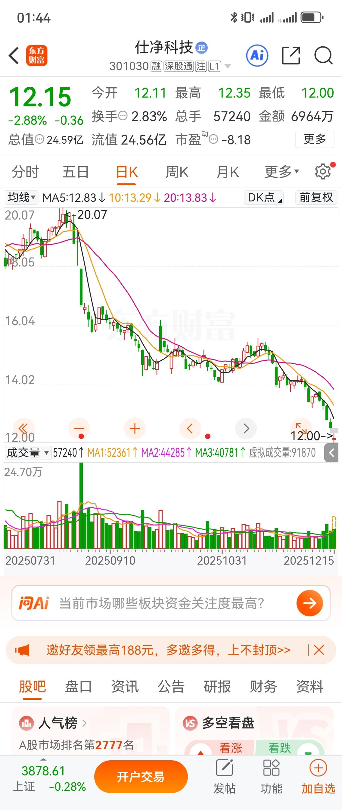 $仕净科技(SZ301030)$ 说是瀑布下跌也不为过啊!