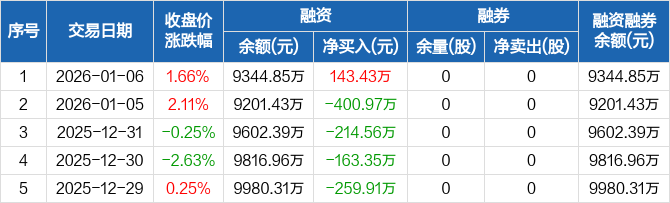 仕净科技:融资净买入143.43万元,融资余额9344.85万元(01-06)