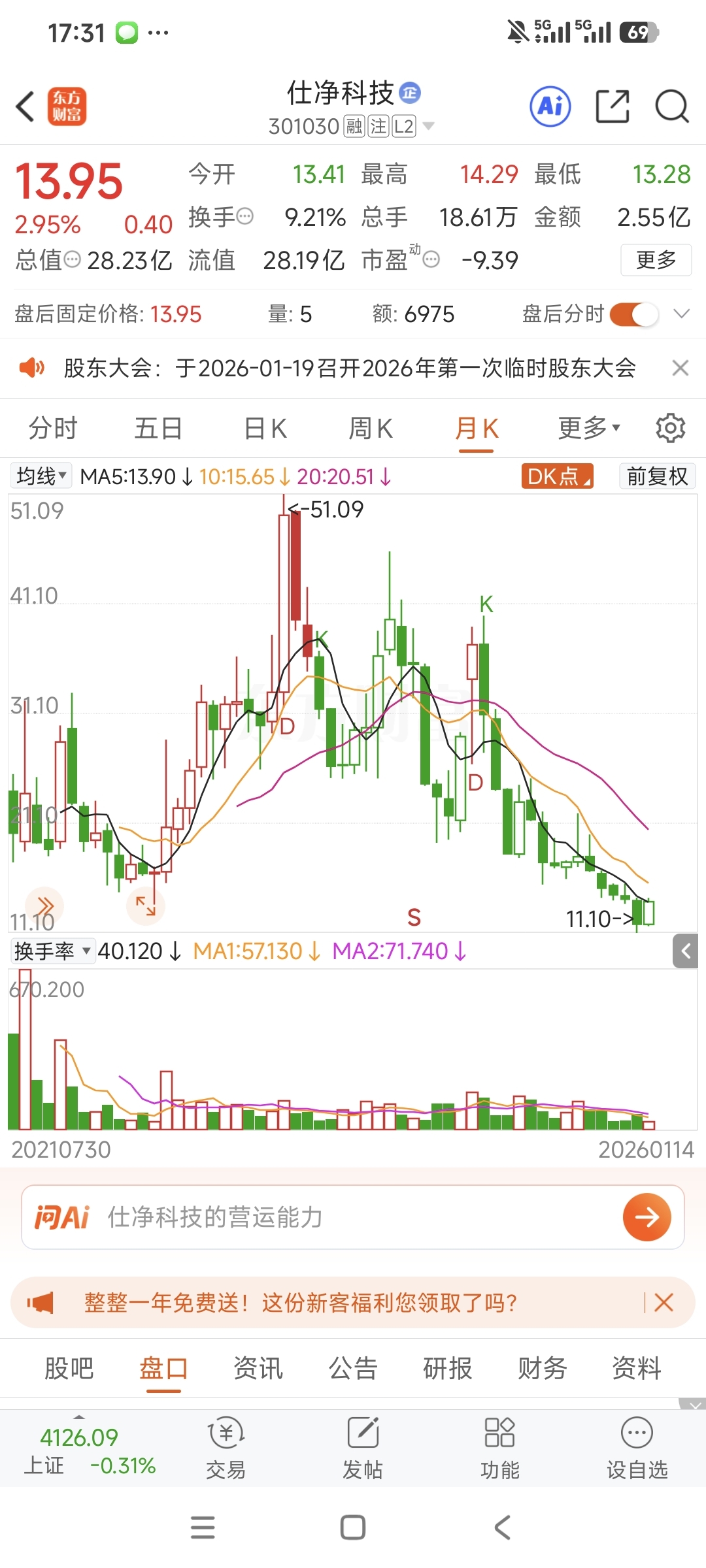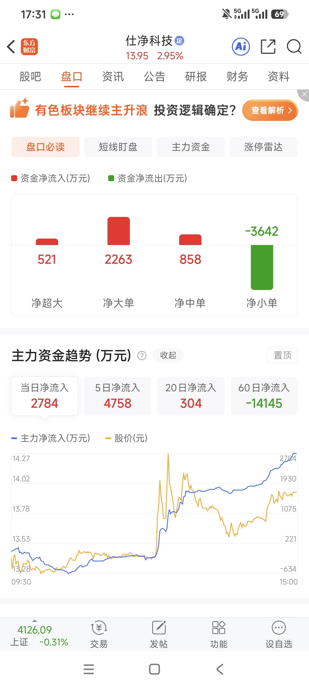$仕净科技(SZ301030)$ 挺好的,量价齐升的一天。