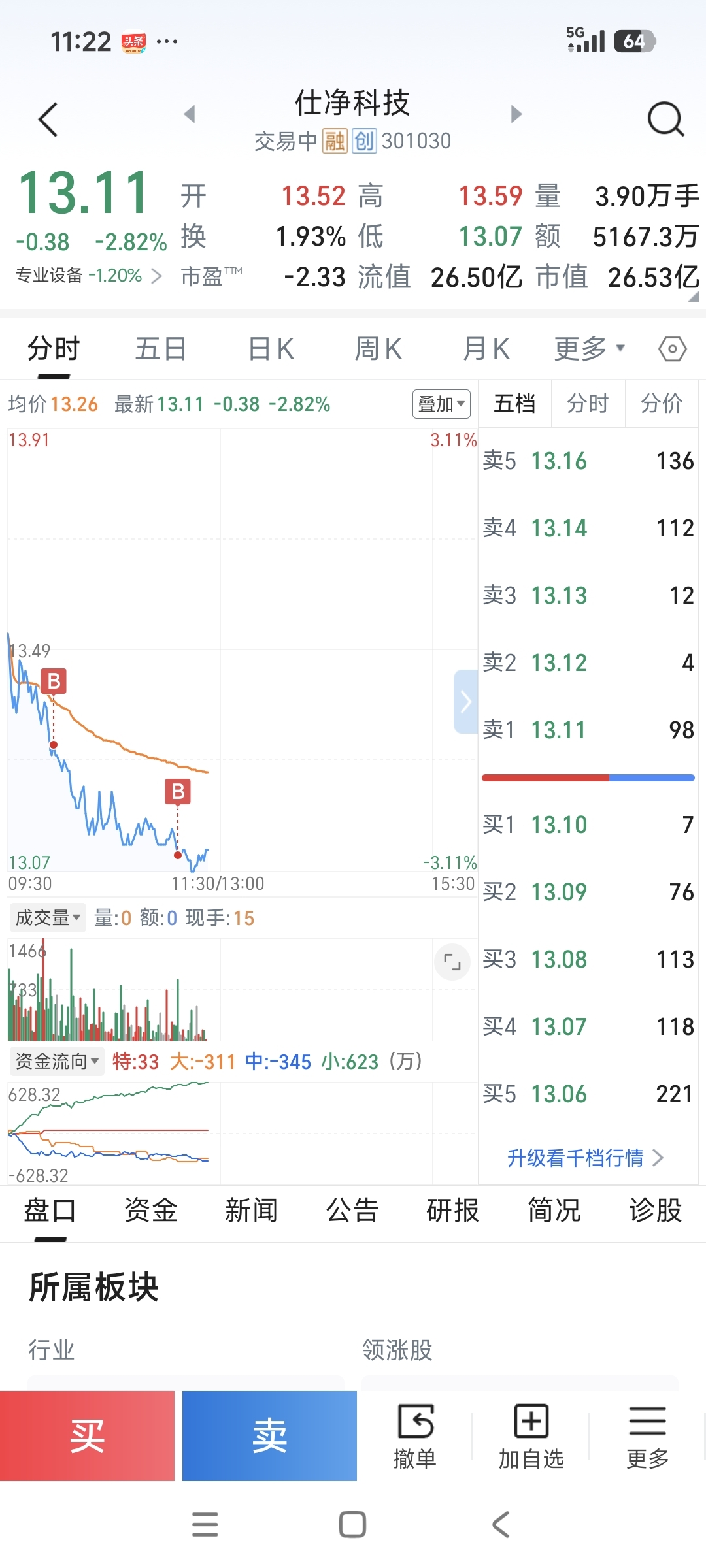 我抄进来了,好害怕!会不会把它买磞盘?我经常是一买入就跌下来
