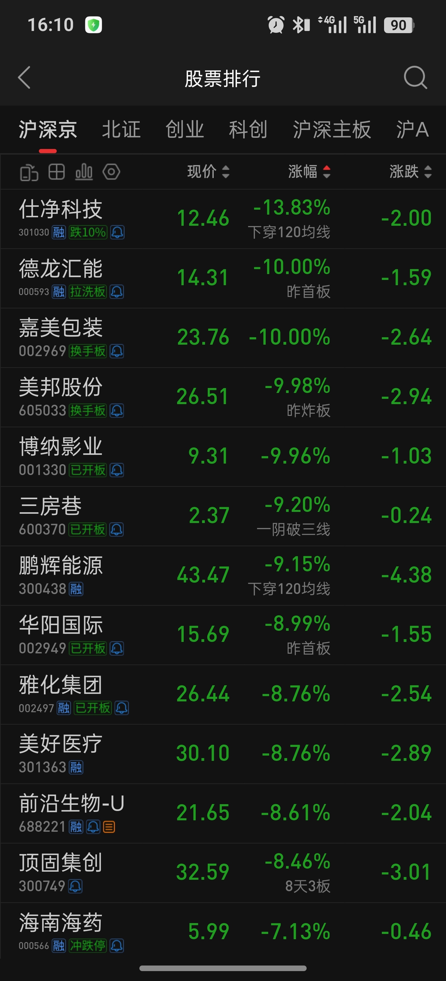 $仕净科技(SZ301030)$ 跌幅第一名,这下好了全国股民都知道了