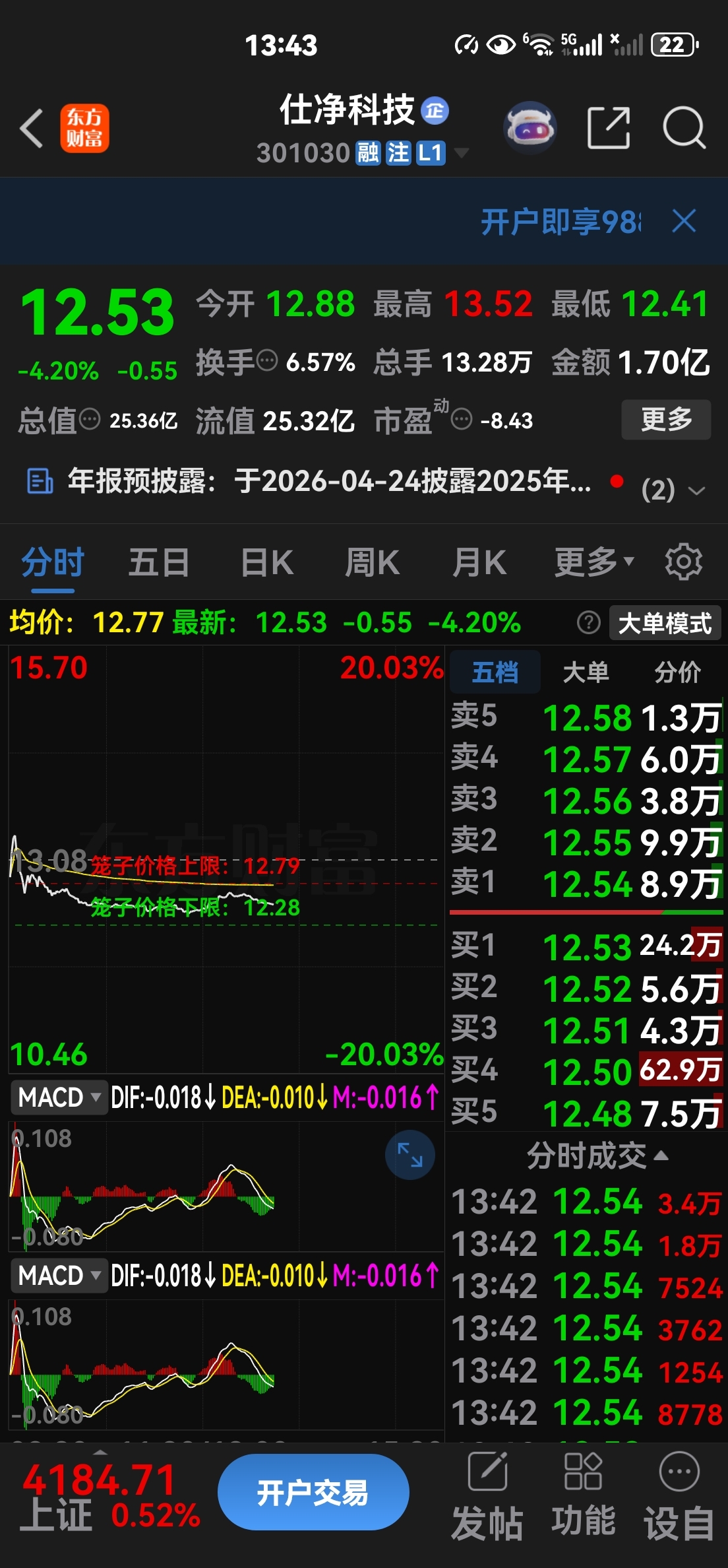 $仕净科技(SZ301030)$ 【主力跑了】 11.86买点,赤脚跑路