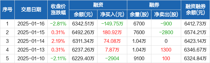 中熔电气:融资净偿还149.75万元,融资余额6342.51万元(01-16)