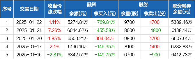 中熔电气:融资净偿还769.81万元,融资余额5274.81万元(01-22)