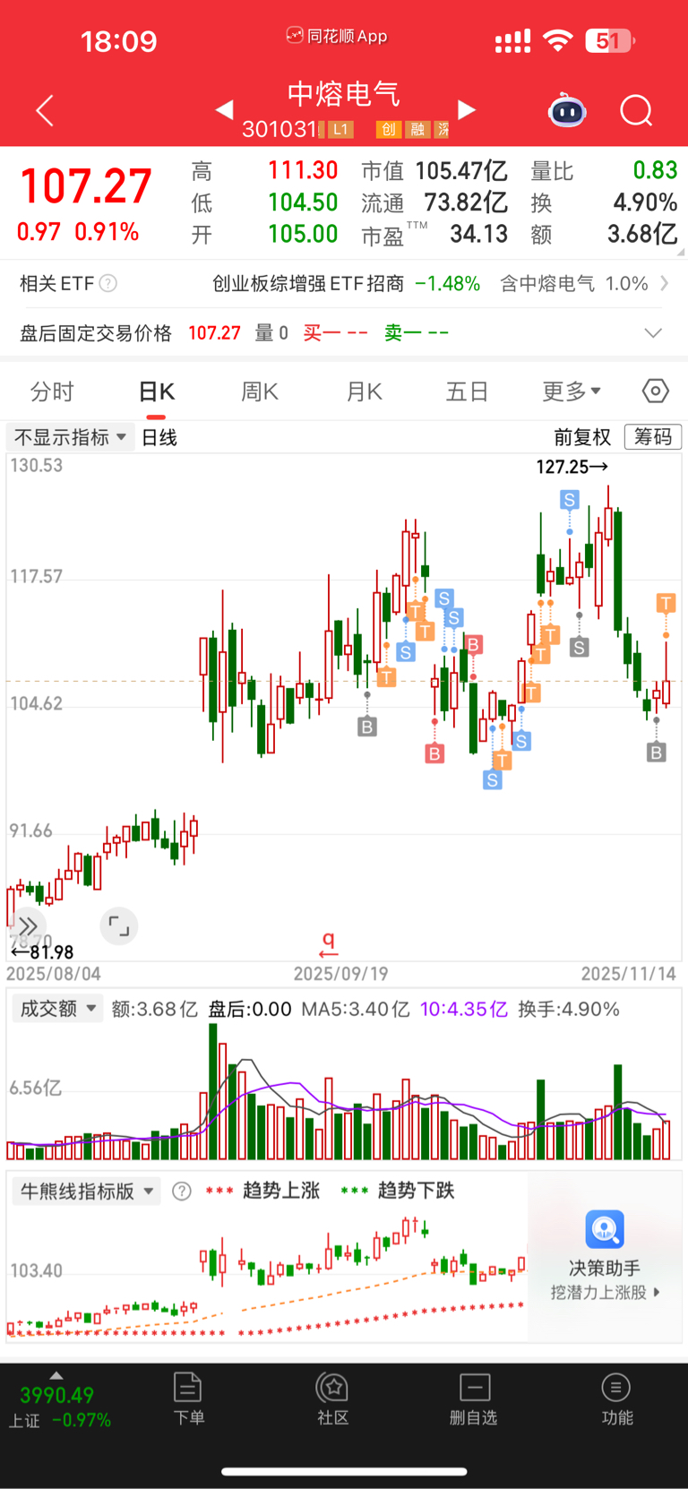 $中熔电气(SZ301031)$ 我又回来了 好股大跌就是机会