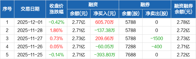 中熔电气:融资净买入605.7万元,融资余额2.77亿元(12-01)