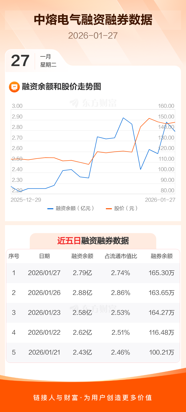 交易所最新数据显示,中熔电气于2026年1月27日获融资买入8262.84万元,融资偿还9123.26万元,当日融资净偿还860.41万元。目前,该股融资余额2.79亿,占流通市值比例为2.74%。