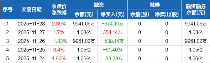 新柴股份:融资净偿还374.1万元,融资余额9941.06万元(11-28)