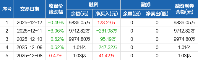 新柴股份:融资净买入123.23万元,融资余额9836.05万元(12-12)