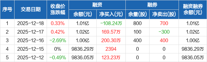 新柴股份:融资净偿还108.24万元,融资余额1.01亿元(12-18)