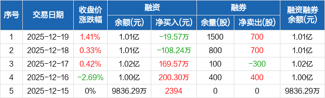 新柴股份:融资净偿还19.57万元,融资余额1.01亿元(12-19)