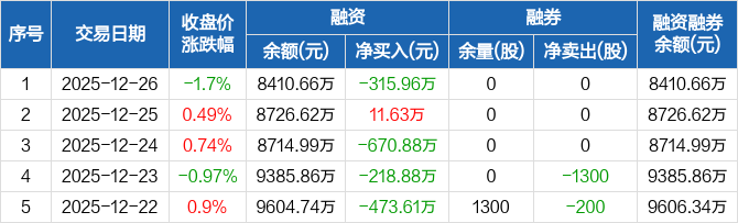 新柴股份:融资净偿还315.96万元,融资余额8410.66万元(12-26)