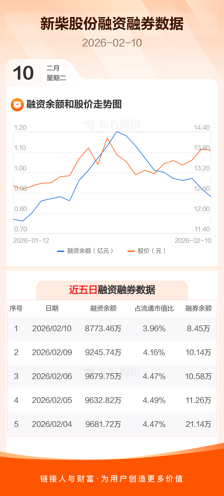 交易所最新数据显示,新柴股份于2026年2月10日获融资买入743.58万元,融资偿还1215.86万元,当日融资净偿还472.28万元。目前,该股融资余额8773.46万,占流通市值比例为3.96%。
