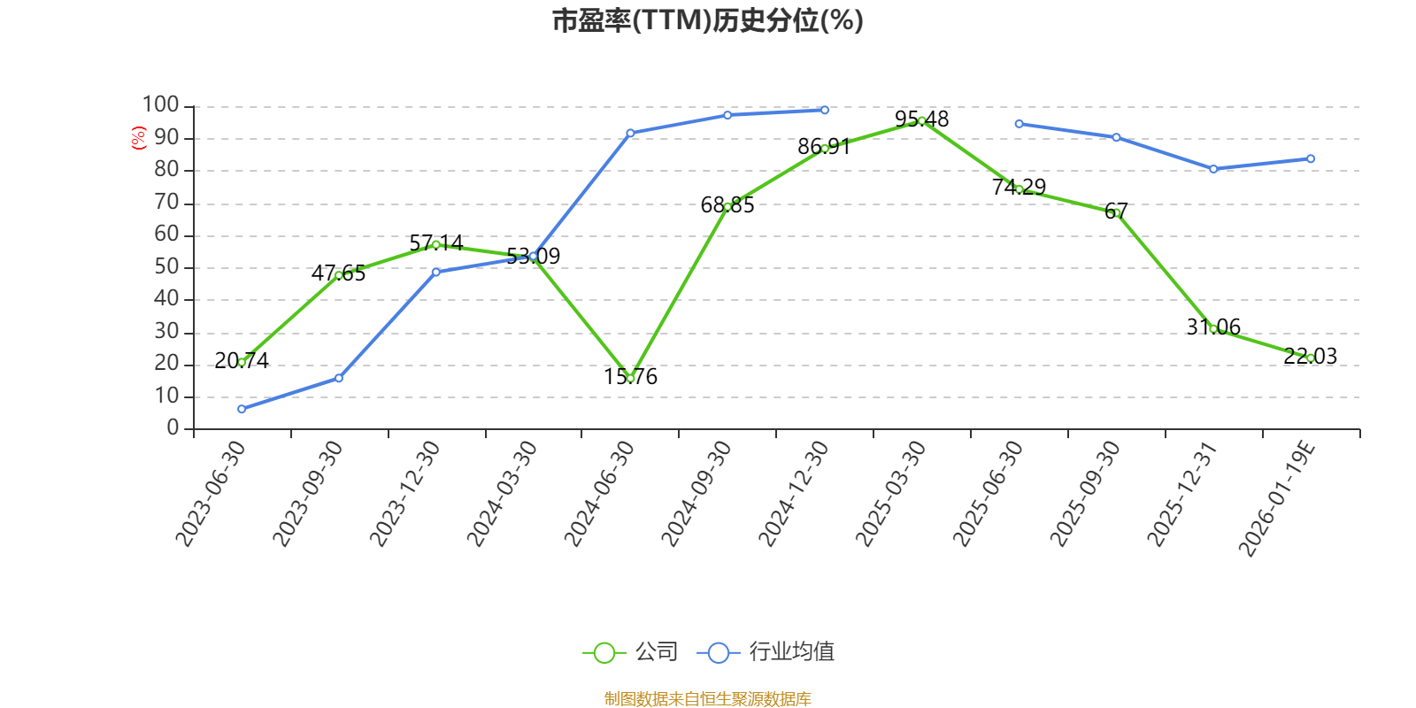 市盈率、市净率为负时,不显示当期分位数,会导致折线图中断。