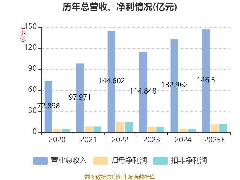 中证智能财讯润丰股份(301035)1月19日晚间披露2025年度业绩预告,预计2025年实现营业收入145.5亿元至147.5亿元,同比增长9.43%-10.93%;归母净利润10.3亿元至11.7亿元,同比增长128.85%-159.95%;扣非净利润预计10.5亿元至11.9亿元,同比增长125.45%-155.51%;基本每股收益3.7元/股-4.2元/股。以1月19日收盘价计算,润丰股份目前市盈率(TTM)约为17.04倍-19.35倍,市净率(LF)约2.73倍,市销率(TTM)约1.36倍。
