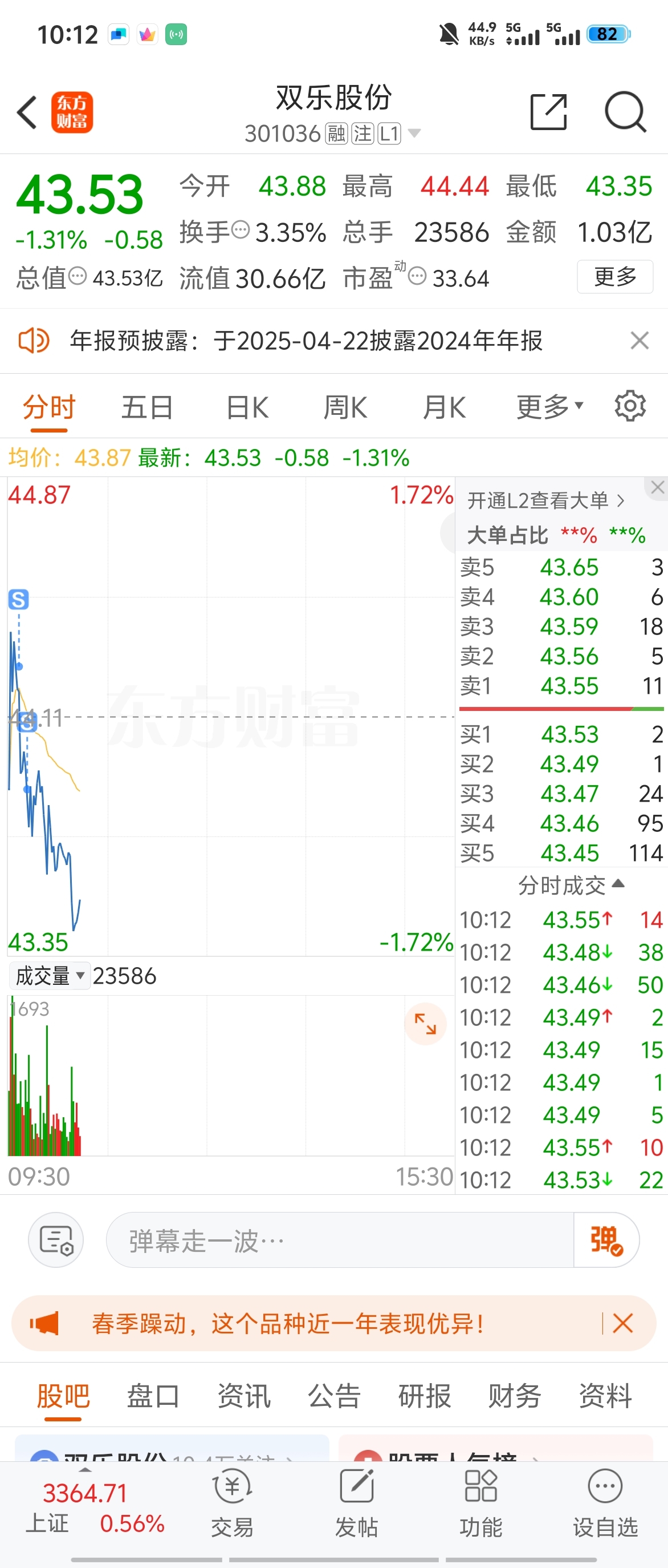 $双乐股份(SZ301036)$ 果断一点