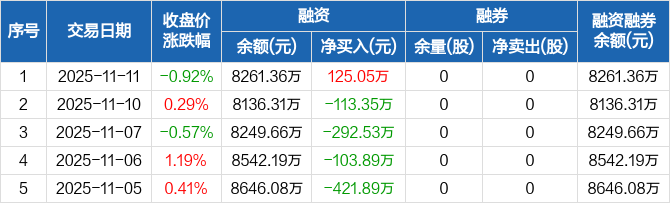双乐股份:融资净买入125.05万元,融资余额8261.36万元(11-11)