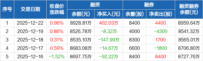 双乐股份:融资净买入402.03万元,融资余额8928.81万元(12-22)