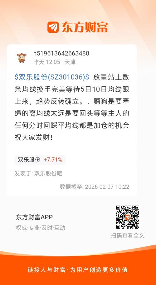 $双乐股份(SZ301036)$ 放量站上数条均线换手完美等待5日10日均线跟上来,趋势反转确立。,骝狗是要牵绳的离均线太远是要回头等等主人的任何分时回踩平均线都是加仓的机会祝大家发财!