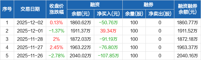 保立佳:融资净偿还50.76万元,融资余额1860.62万元(12-02)