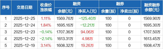 保立佳:融资净偿还125.4万元,融资余额1569.76万元(12-25)