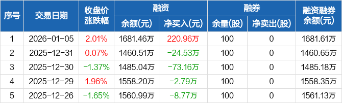 保立佳:融资净买入220.96万元,融资余额1681.46万元(01-05)