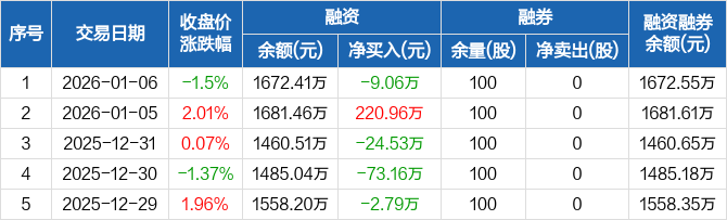 保立佳:融资净偿还9.06万元,融资余额1672.41万元(01-06)