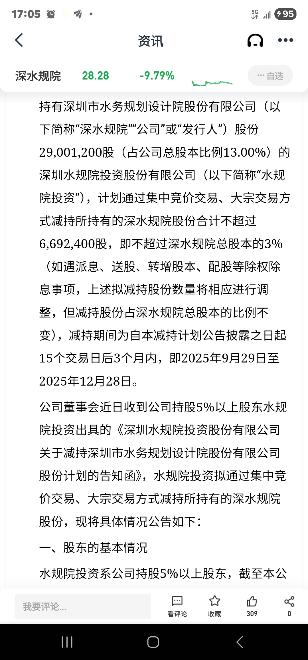 $深水规院(SZ301038)$ 大股东减持,你们怎么做到自嗨的?