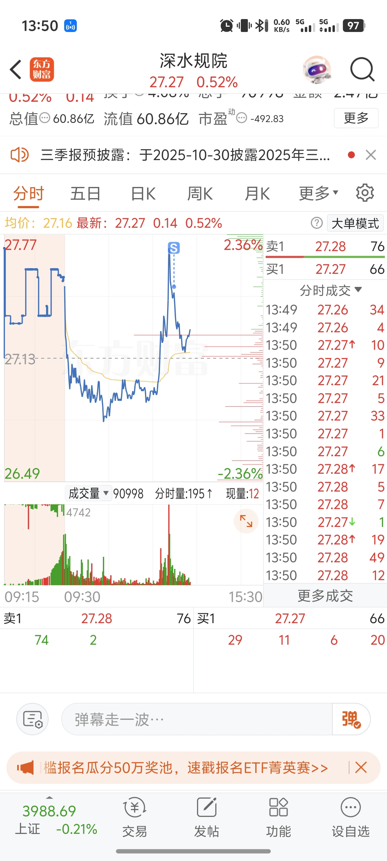 27.15没买进,昨天低点进的,开盘没卖出去做T,中途卖了,