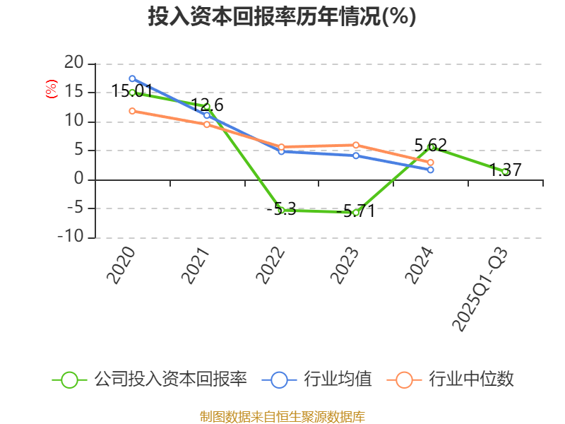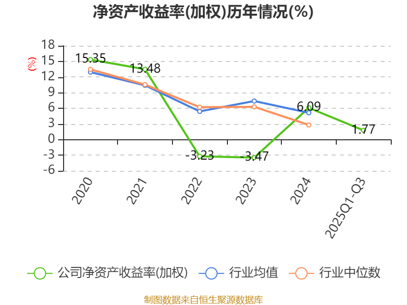盈利能力方面, 2025年前三季度公司加权平均净资产收益率为1.77%,同比上升2.23个百分点。公司2025年前三季度投入资本回报率为1.37%,较上年同期上升2.39个百分点。