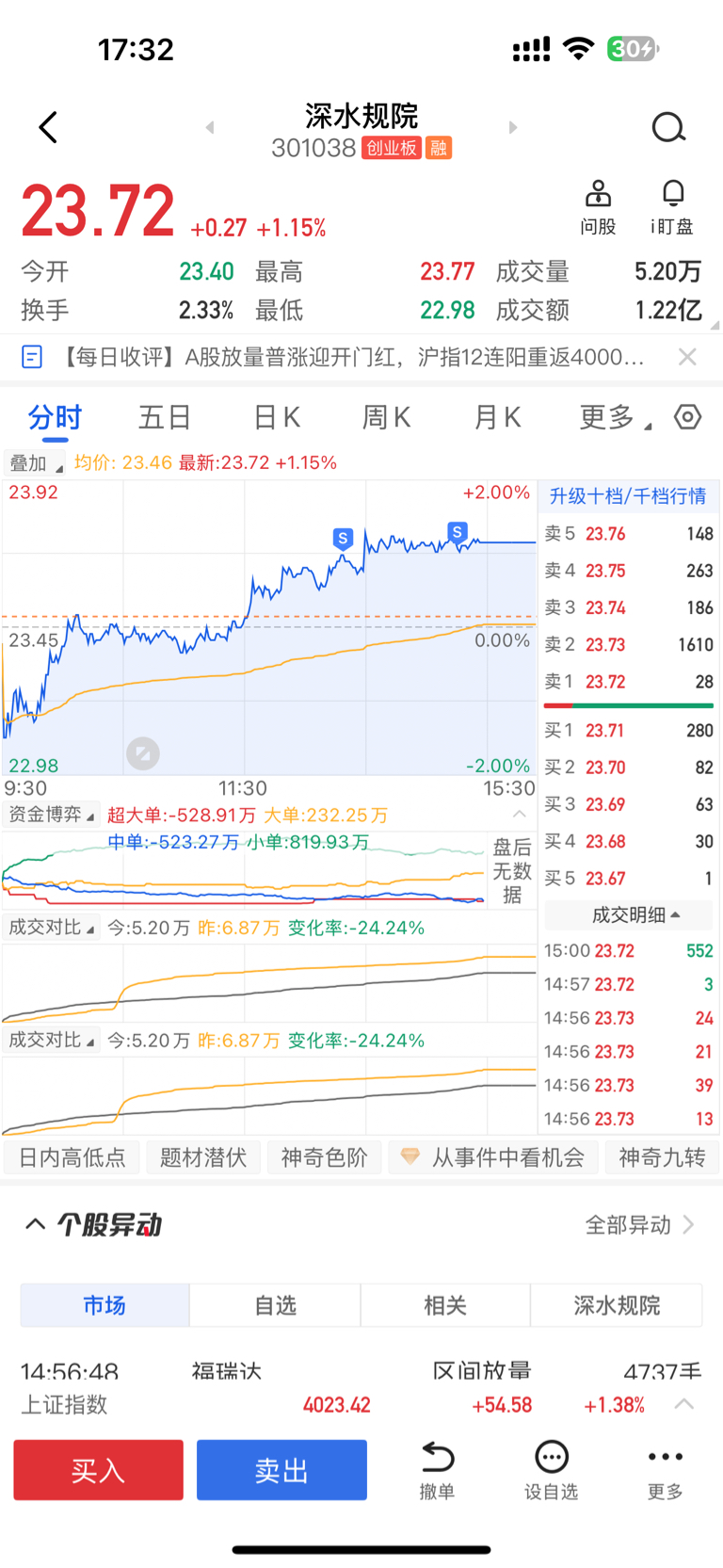 $深水规院(SZ301038)$ 明天砸盘再买。