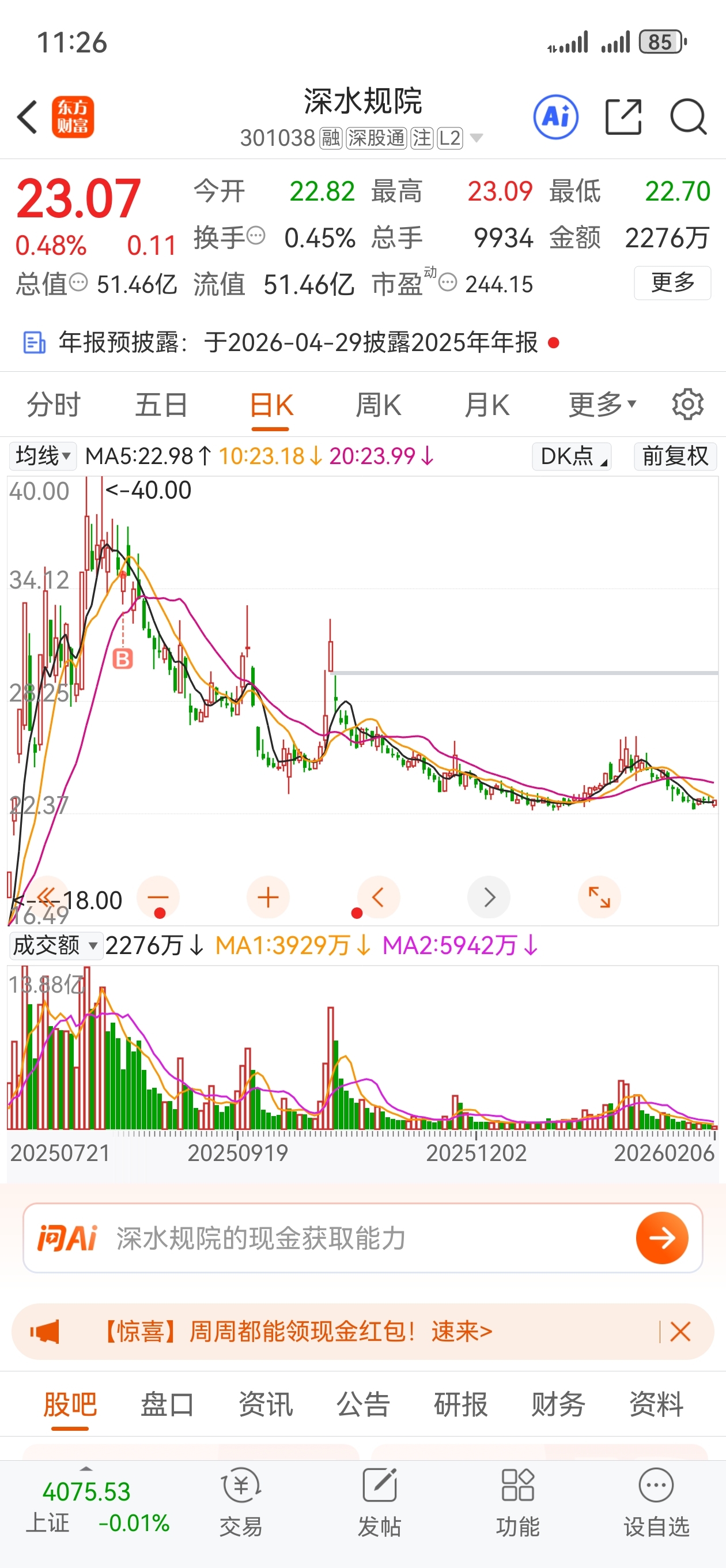 $深水规院(SZ301038)$ 小调查,有没有比我更高的:34.85 报一报