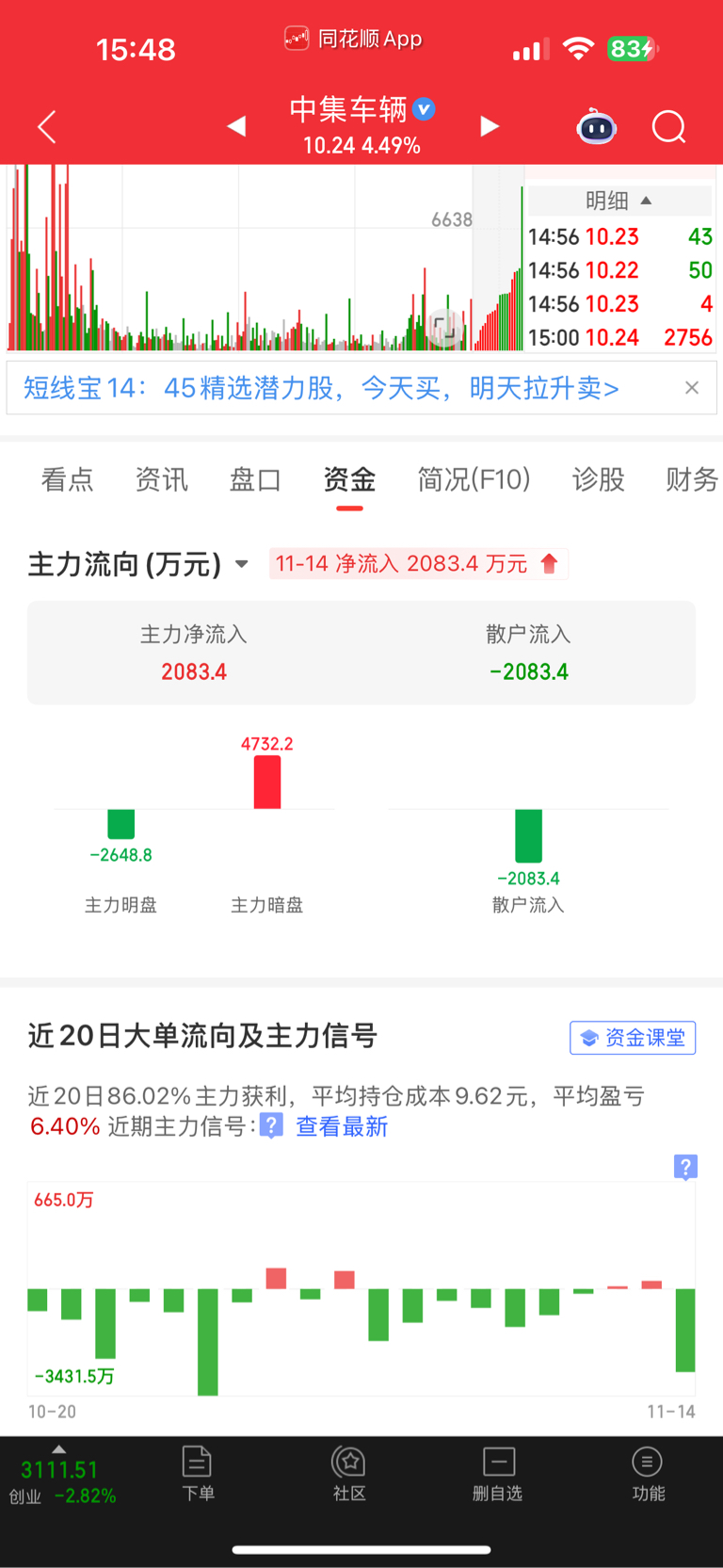 $中集车辆(SZ301039)$ 大家谁用过这个主力暗盘?