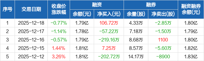 中集车辆:融资净买入106.72万元,融资余额1.79亿元(12-18)