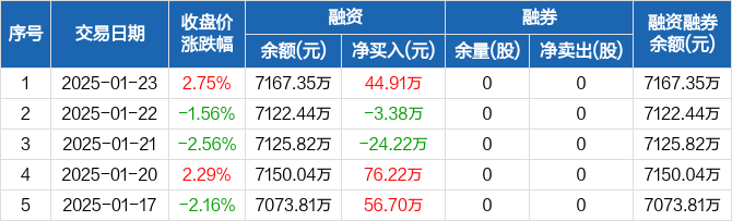 中环海陆:融资净买入44.91万元,融资余额7167.35万元(01-23)