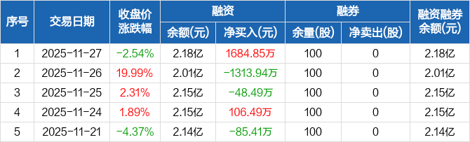 中环海陆:融资净买入1684.85万元,融资余额2.18亿元(11-27)