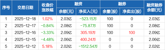 中环海陆:融资净偿还523.15万元,融资余额2.03亿元(12-18)