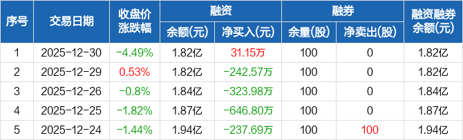 中环海陆:融资净买入31.15万元,融资余额1.82亿元(12-30)