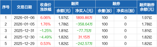 中环海陆:融资净买入1899.86万元,融资余额1.97亿元(01-06)